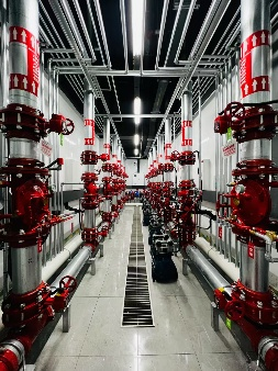 本项目机房二层共八个包间,采用净显冷量为280kW和330kW间接蒸发冷却机组作为制冷冷源,同时配置2台净显冷量为300KW、热回收量为325kW的热回收型预制全变频氟泵一体式空调机组来回收热量进行其他系统制热源。